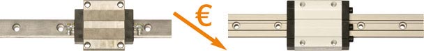 • identische Anschlussmaße für Bohrlöcher und Anschlussteile wie viele Kugelumlaufführungen