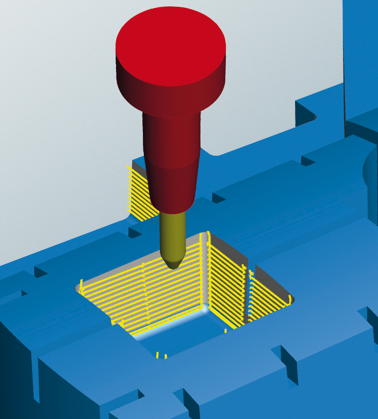 Das Geheimnis dieses gerade für den Formenbau interessanten extrem effizienten Schlichtverfahrens ist der intelligente Einsatz konischer Tonnenfräser. Der große Radius der Tonnenform wird dabei genutzt, um bei gleicher Rautiefe größere Bahnabstände mit optimaler Anstellung wählen zu können.