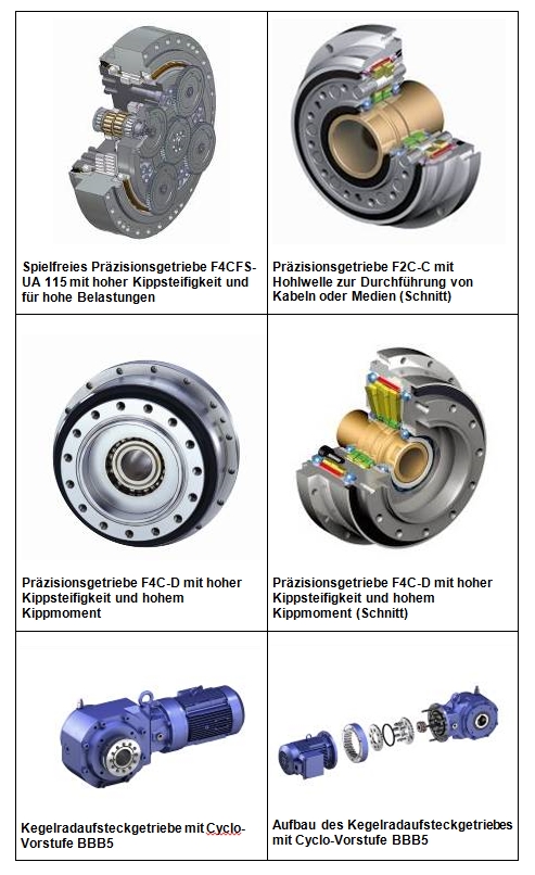 Weitere Einsatzbereiche für die Getriebe der umfangreichen Fine Cyclo Reihe sind Positionieraufgaben (Punkt zu Punkt) und Bahnanwendungen, Biegeköpfe, Schwenkwechsler, Scheibenmagazine, Kettenmagazine oder Schwenktische.